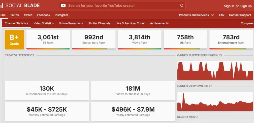 - Global Social Blade Rank: 3,061